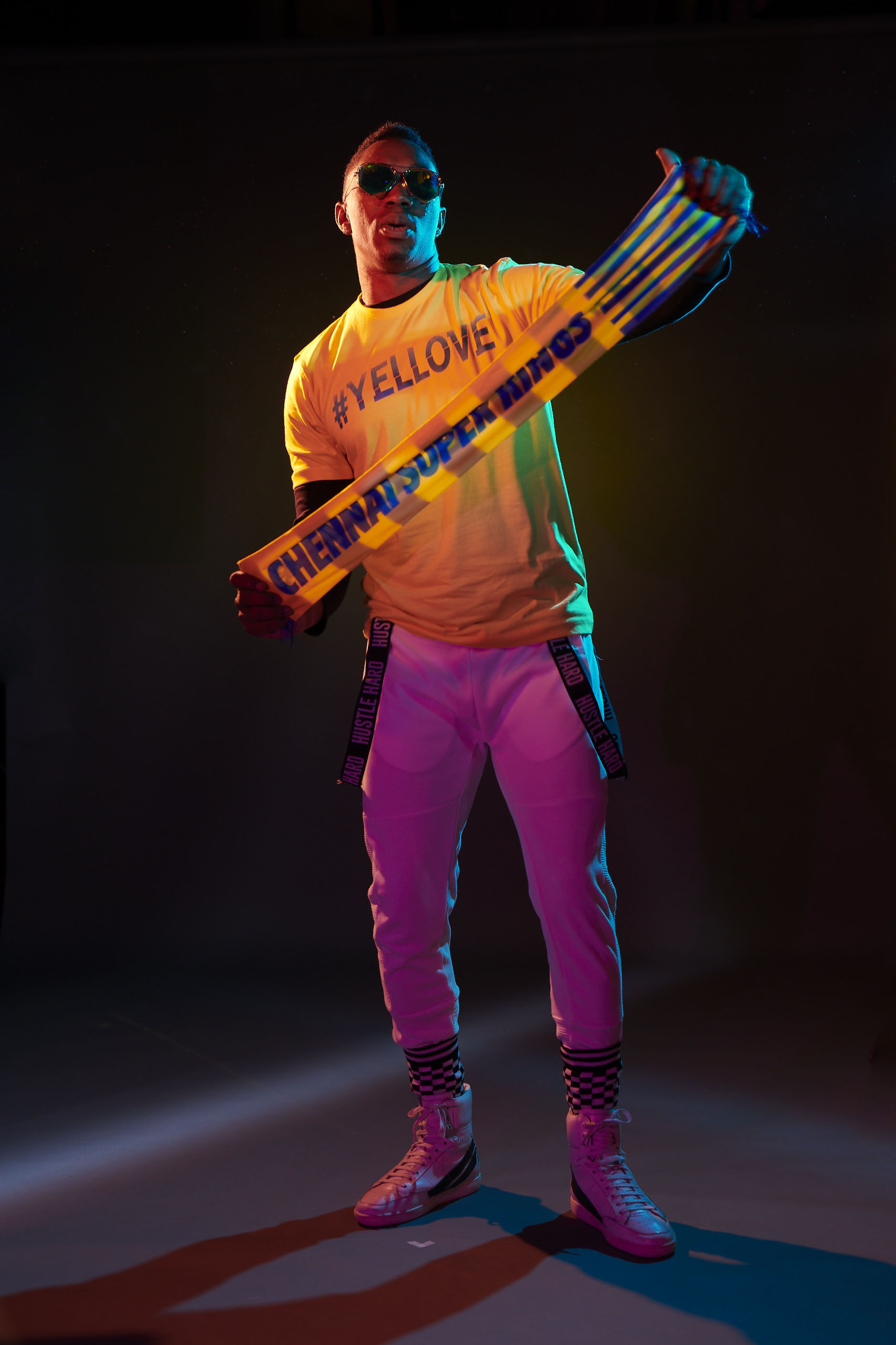 CSK 2019 SHOOT FOR THEIR MERCHANDISE. OPN ADVERTISING. CHOCKALINGAM AND VIVIAN RAYEN. STYLING BY PALLAVI SINGH. PHOTOGRAPHS BY MADHAVAN PALANISAMY